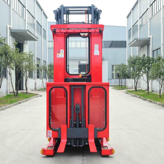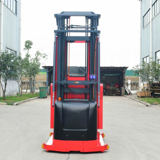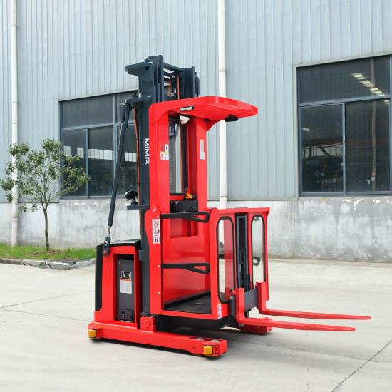 Empilhadeira de paletes de 3 vias série MC 1.2-1.6T (tipo de condução com suporte) Função de empilhamento de 3 vias: os garfos podem girar 180° e fazer deslocamentos laterais da esquerda para a direita sem girar o corpo. O empilhador de paletes de 3 vias é a primeira escolha para armazenamento intensivo, sendo usado principalmente em logística, medicamentos, alimentos e armazenamento refrigerado de baixa temperatura. ● Empilhamento em estradas ultra estreitas e design de prateleira alta; ● Manuseio horizontal; ● Carregar/descarregar cargas.
